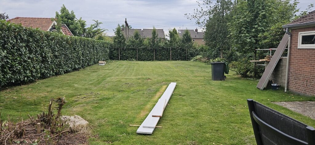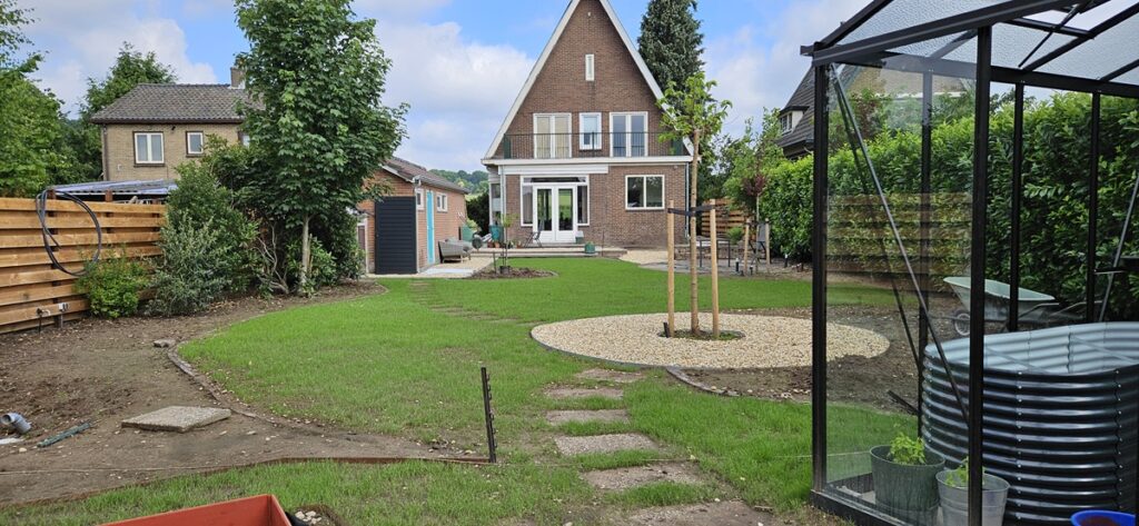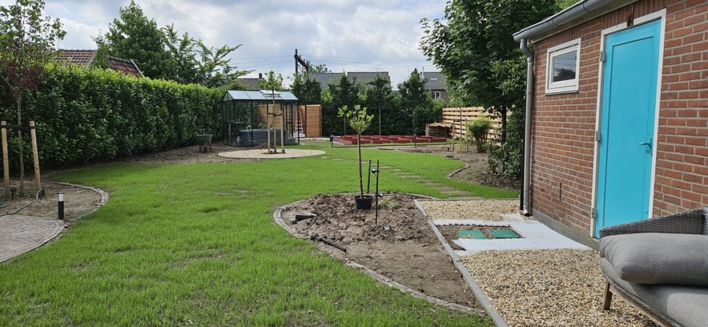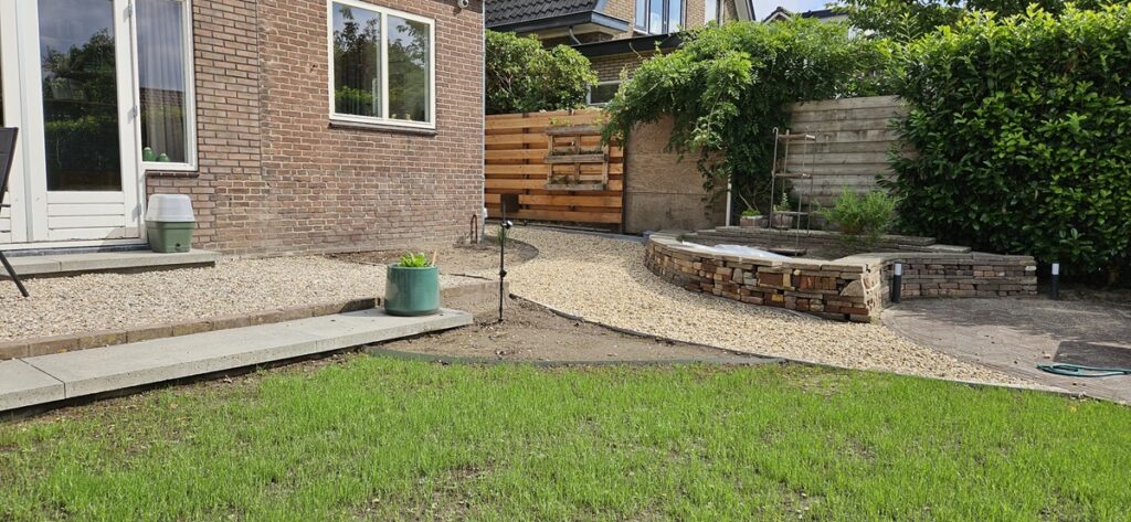 Tijdens de aanleg: de aanleg is deels door een hovenier en deels door de eigenaren zelf uitgevoerd.